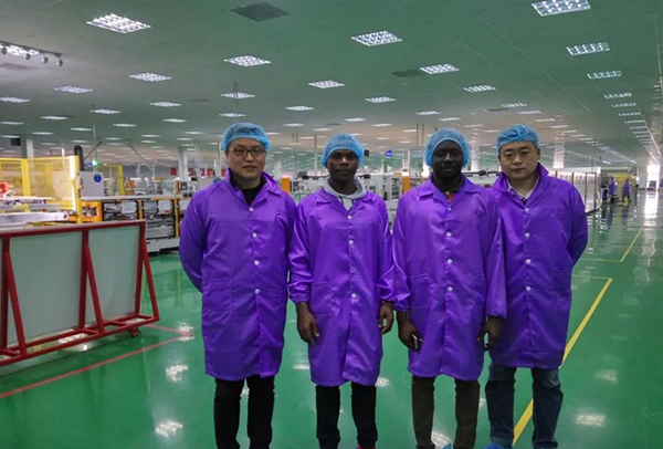 4月25日,我們就迎來了兩位加納的客人,我們這兩位加納客人中文也是非常的溜,還能彪兩句方言呢!在愉悅的氣氛當中,我們業務部李經理,陪同我們遠道而來的加納的客人,首先參觀了廠區的展廳,了解了公司的成立、發展以及未來的發展方向,觀摩了產品展示區的組件產品以及微電站。緊接著,又來到了車間,李經理系統詳細的給加納客人介紹了我們的復合型生產線的特點及優勢,加納客人也饒有興致地詢問了很多問題。