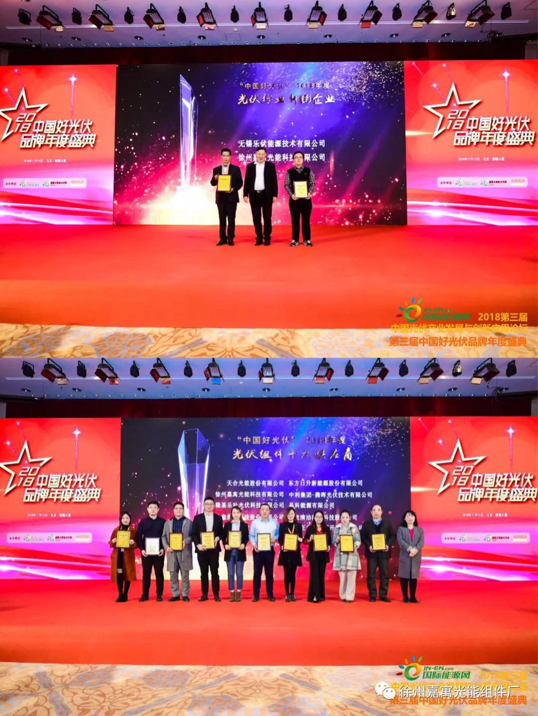 嘉寓光能在中國好光伏評選中再度斬獲光伏組件十大供應商以及年度新銳企業