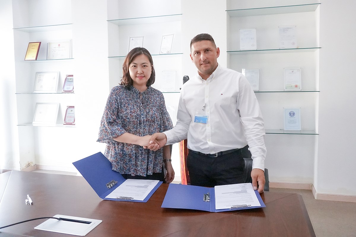 嘉寓光能業務副總冉峰與波蘭客戶簽約現場